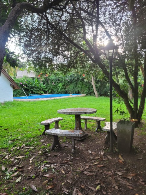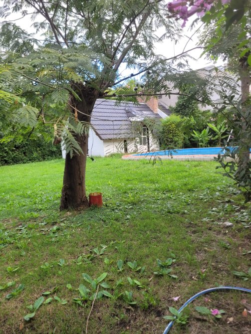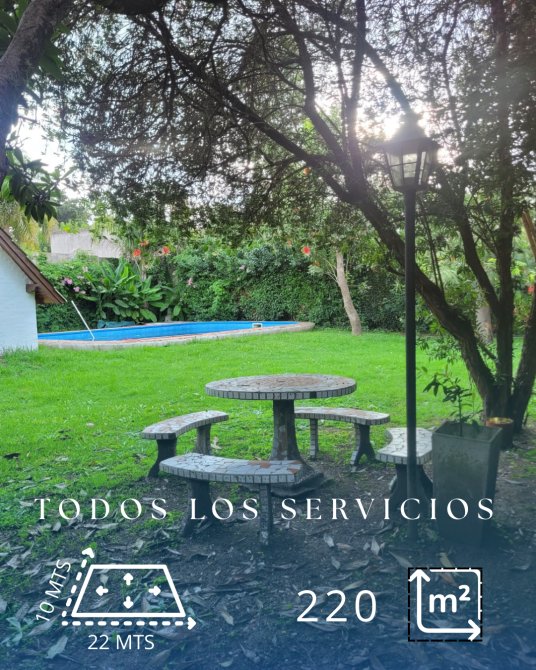 La propiedad se desarrolla sobre un lote en esquina de 11 x 20 metros, cuenta con un quincho sólido de 6,5 x 4 metros, techo a dos aguas de chapa y cielo raso de madera en buen estado de conservación. El mismo está equipado con parrilla, mesada y bacha, cuenta con aire acondicionado y piso cerámico. Además, dispone de un baño exterior para mayor comodidad. Pileta de material de 9 x 5 metros con accesoriosen todo funcionando y en exlente estado de conservacion. Rodeada de un hermoso parque con cerco verde perimetral y un hermoso jardin que aporta color y vida al entorno.