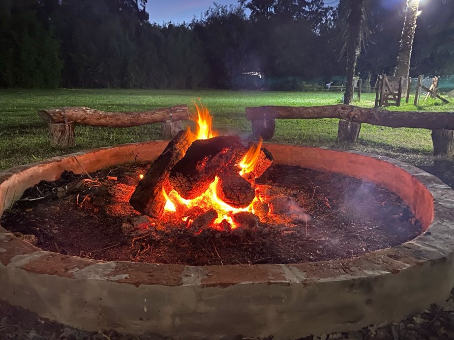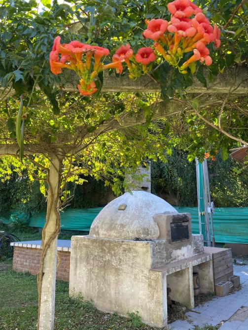 Quincho semicubierto, horno de barro y parrilla para eventos al aire libre