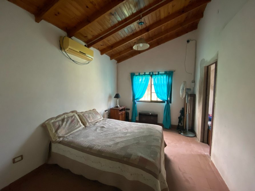 La propiedad cuenta con una casa principal de 2 habitaciones, cocina, comedor, baño completo y entrepiso de madera, equipada con termo eléctrico y equipo de aire acondicionado.